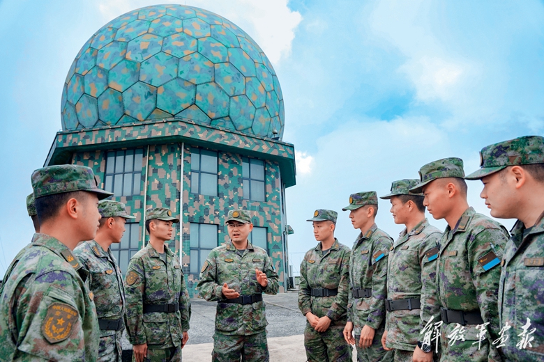 空軍某雷達站官兵結合自身崗位實踐,交流分享學習中央軍委政治工作會議精神心得。(攝影/王宏宇)