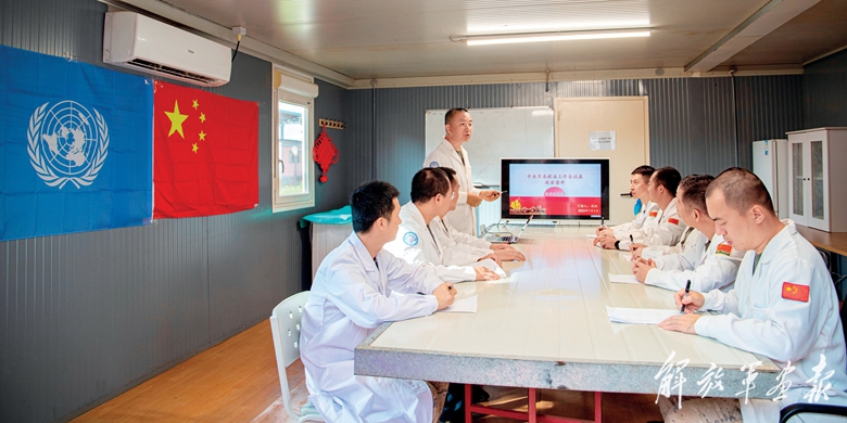 身在異國他鄉(xiāng),牢記使命重托。中國第14批赴南蘇丹(瓦烏)維和醫(yī)療分隊認真學習中央軍委政治工作會議精神。(攝影/王皓宇)