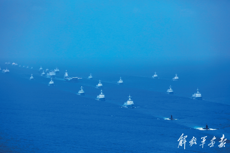 2018年4月12日,中央軍委在南海海域隆重舉行海上閱兵,遼寧艦航母編隊(duì)精彩亮相,一大批新型潛艇、水面艦艇、作戰(zhàn)飛機(jī)集中展示。(攝影/莫小亮)