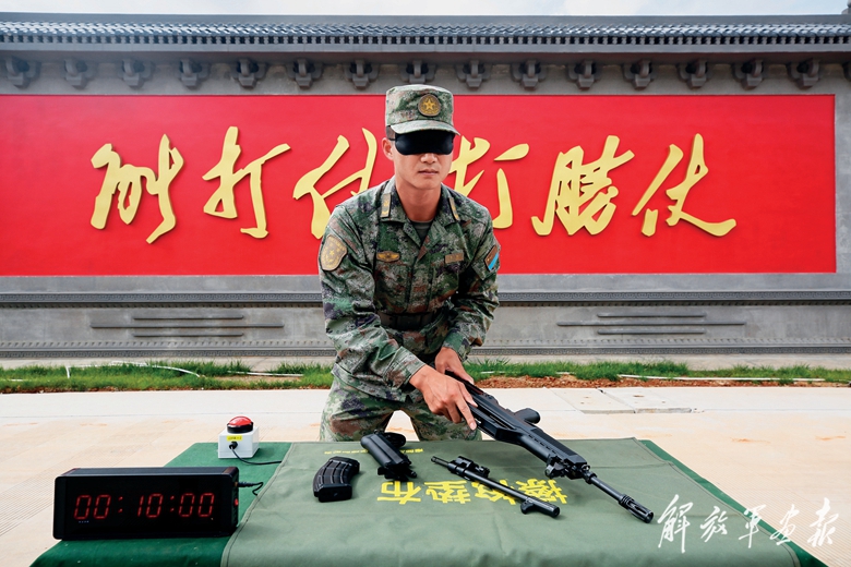 李聰為戰(zhàn)友演示蒙眼拆裝槍支。