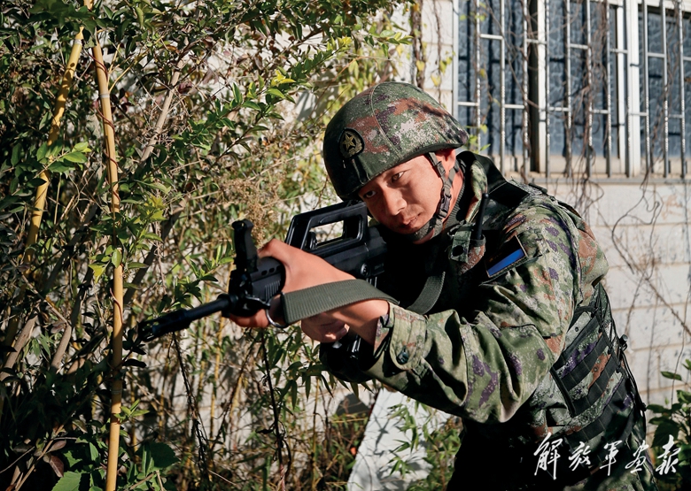 偵察訓(xùn)練中,李聰搜索前進(jìn)。