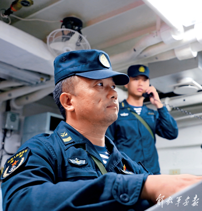 “發(fā)現(xiàn)‘敵’潛艇,迅速前出!”某艦接到指令后,快速向任務海區(qū)機動。與此同時,正在某海區(qū)執(zhí)行值班任務的另一艦艇接到命令,攜手抗擊“敵”潛艇。