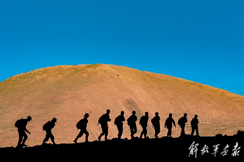 國防大學(xué)軍事文化學(xué)院“邊防行”教學(xué)小分隊(duì)徒步前往某哨所演出。
