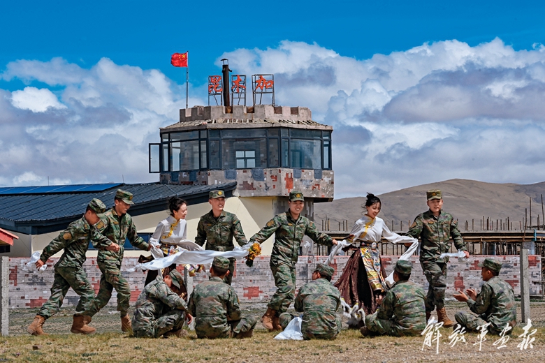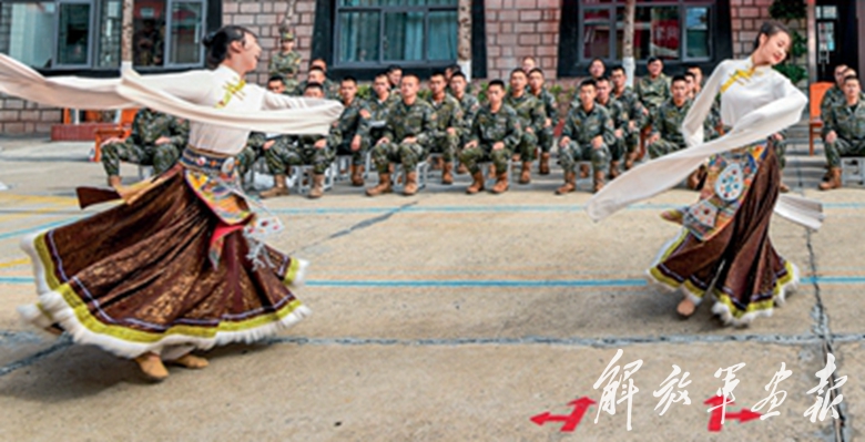 “邊防行”教學(xué)小分隊(duì)為官兵演出藏族舞蹈。