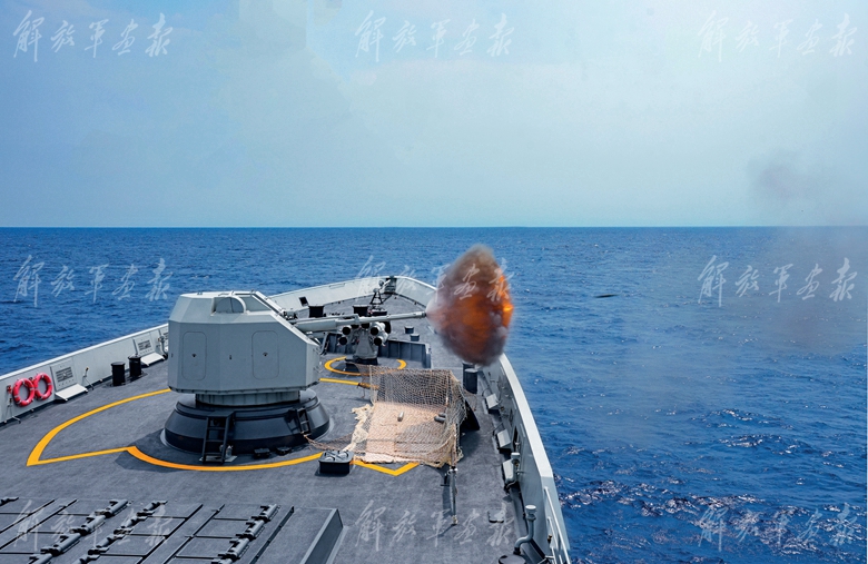 我方艦艇主炮射擊瞬間。