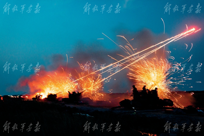 “目標(biāo)鎖定,發(fā)射!”一聲令下,一顆顆炮彈拖著烈焰呼嘯出膛,在蒼穹劃出道道弧線,直撲目標(biāo)而去……