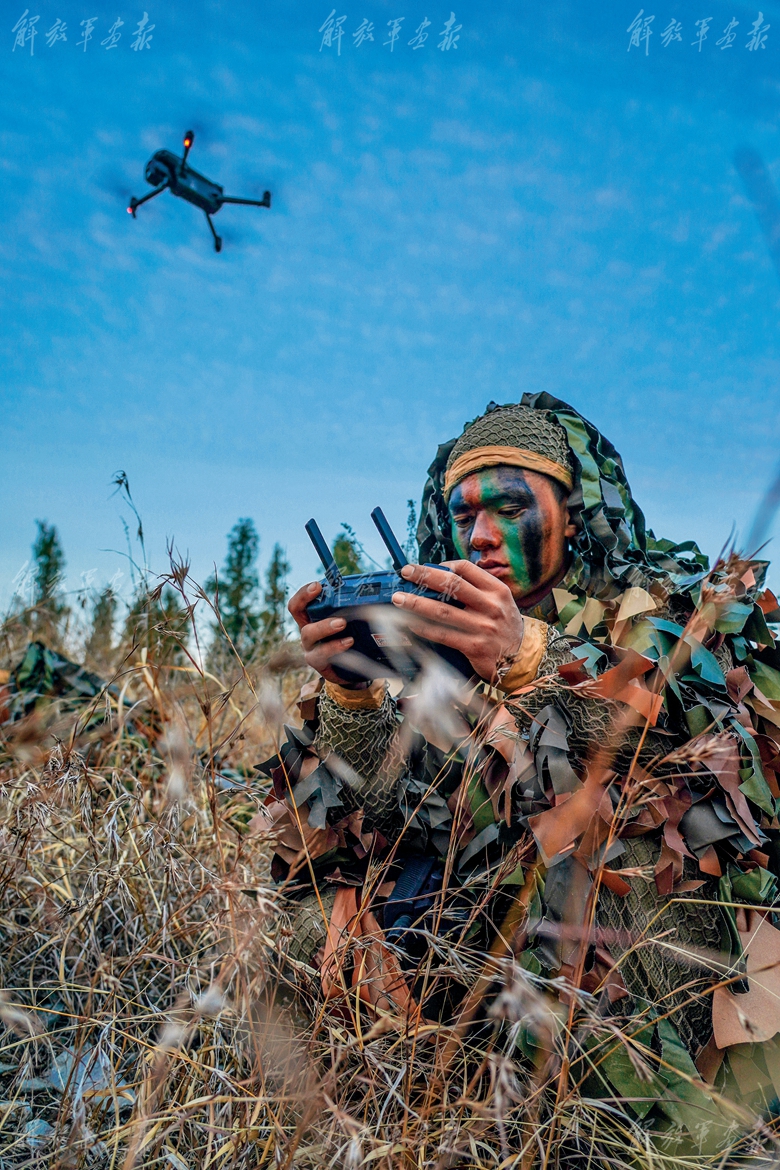 無(wú)人機(jī)操控手偵察目標(biāo)。