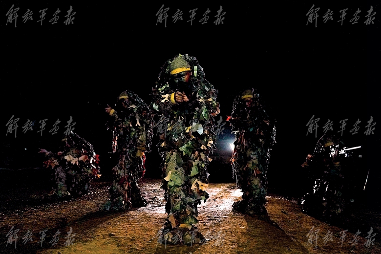 夜幕降臨,訓(xùn)練仍在繼續(xù)。在夜色掩護(hù)下,狙擊組快速占領(lǐng)有利位置,突擊組穿插迂回隱蔽接“敵”……隨著一聲槍響,“敵”目標(biāo)被成功狙殺。