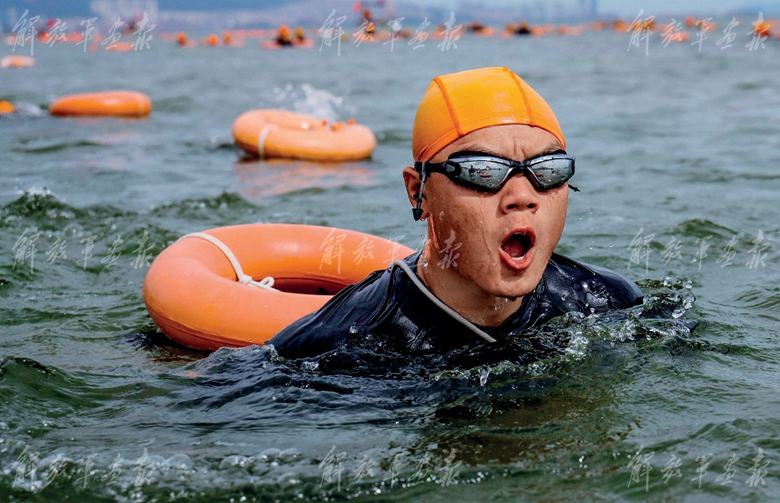 “準(zhǔn)備下水!”隨著指揮員口令下達(dá),官兵們開始海上泅渡。在編隊長距離拉游中,他們組織兵齡較長、經(jīng)驗豐富的干部骨干擔(dān)任排頭破浪尖兵,戰(zhàn)士們緊跟而上,向大海深處前進(jìn)。500米、800米、1000米……大家不斷突破設(shè)定的目標(biāo),訓(xùn)練質(zhì)效梯次提升。