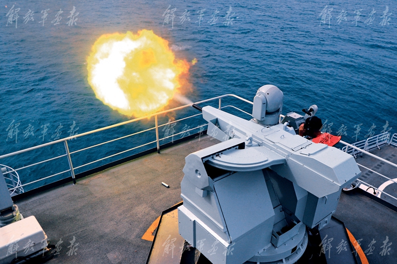 青海湖艦進(jìn)行火炮射擊訓(xùn)練。