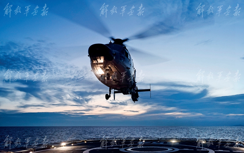 艦載直升機(jī)進(jìn)行起降訓(xùn)練。