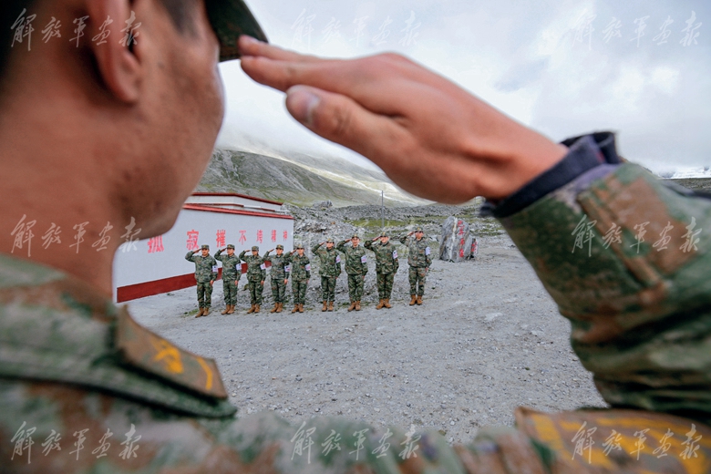 巡診隊(duì)員結(jié)束診療后,向哨所官兵敬禮道別。