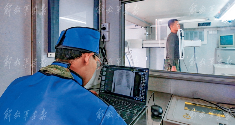 放射科醫(yī)生為戰(zhàn)士拍胸片。