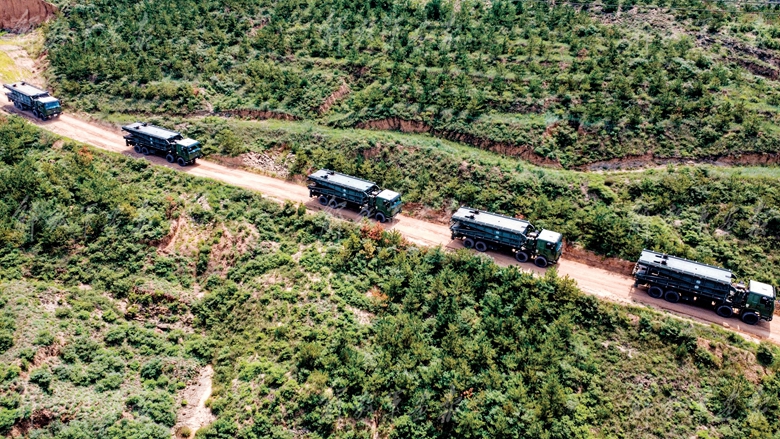 舟橋分隊(duì)向指定地域機(jī)動(dòng)。
