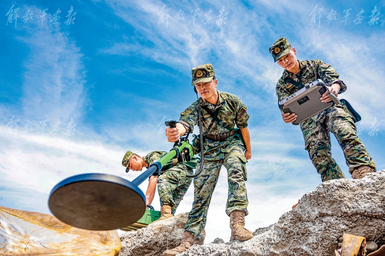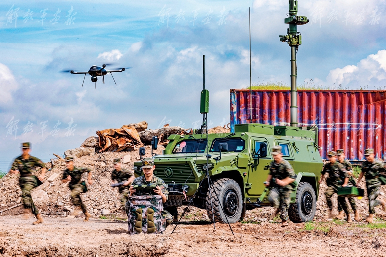 測(cè)繪無人機(jī)啟動(dòng)升空、工程偵察車抵近偵察,工程偵察員利用地質(zhì)雷達(dá)、紅外掃描儀多維立體采集災(zāi)情數(shù)據(jù)信息……不多時(shí),現(xiàn)場(chǎng)畫面回傳指揮所,指揮員緊急研判災(zāi)情,制訂行動(dòng)方案。