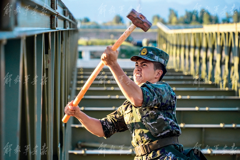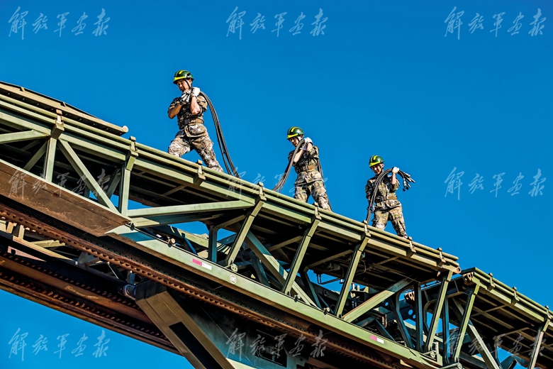 舟橋分隊(duì)架設(shè)應(yīng)急橋梁。