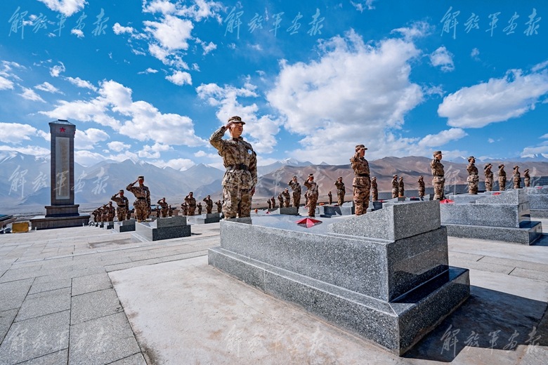 官兵在康西瓦烈士陵園祭奠革命先烈。