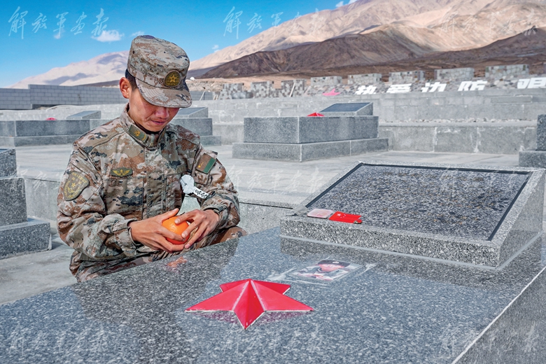 陳祥榕烈士生前最喜歡吃橘子,下士趙鵬飛深情地剝開一個(gè)橘子,獻(xiàn)給這個(gè)未曾謀面的同齡戰(zhàn)友。