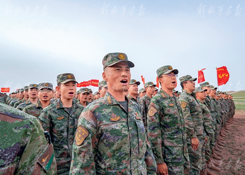 官兵合唱《強(qiáng)軍戰(zhàn)歌》。