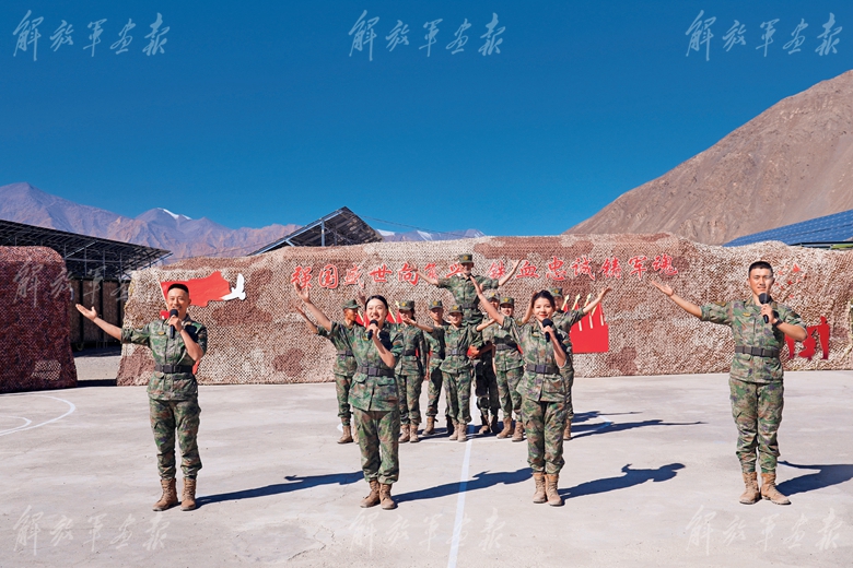 在高原駐訓(xùn)的陸軍某團(tuán)官兵開(kāi)展文藝演出活動(dòng),抒發(fā)對(duì)偉大祖國(guó)的忠誠(chéng)與熱愛(ài)。(攝影/陳汗杰)