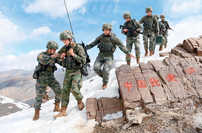 新疆軍區(qū)別迭里邊防連官兵在海拔4000多米的邊防線(xiàn)上巡邏執(zhí)勤,忠誠(chéng)守衛(wèi)祖國(guó)邊境和平安寧。圖為執(zhí)勤官兵通過(guò)險(xiǎn)要路段。(攝影/特約記者 張永進(jìn))