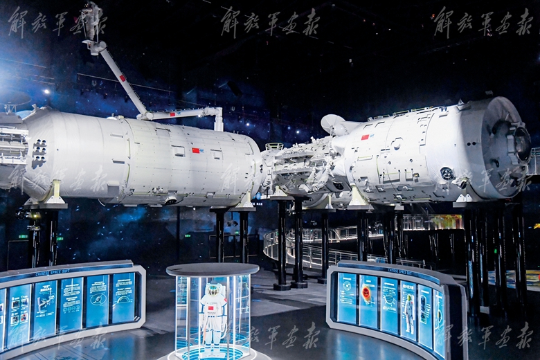 珠海太空中心展出“天宮”空間站T型1:1展示艙。