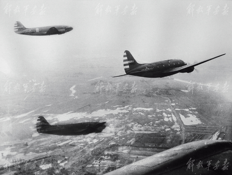 1951年10月1日,空軍機(jī)群飛過檢閱臺(tái)上空。
