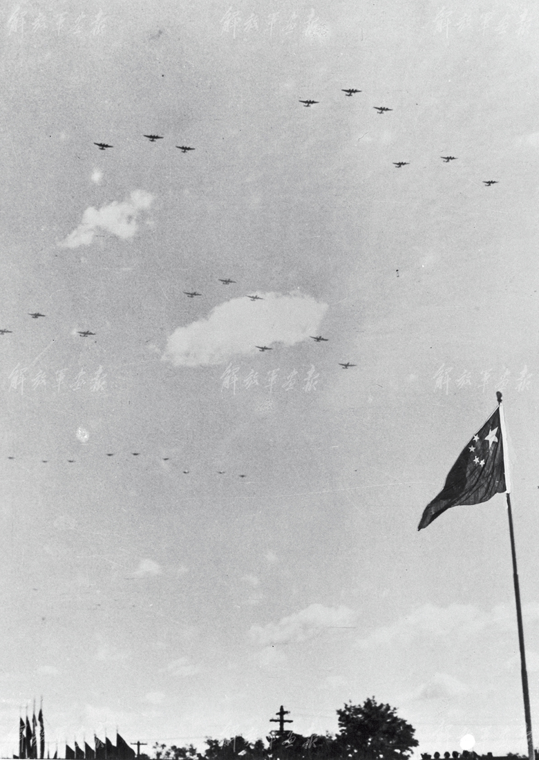 1949年10月1日,籌建中的人民空軍戰(zhàn)機(jī)在開國大典上接受檢閱。(攝影/林 楊)