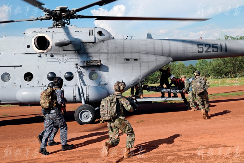 2024年8月,“鷹擊-2024”中泰空軍聯(lián)合訓(xùn)練中,中泰參訓(xùn)隊(duì)員進(jìn)行聯(lián)合搜救訓(xùn)練。(攝影/余紅春)