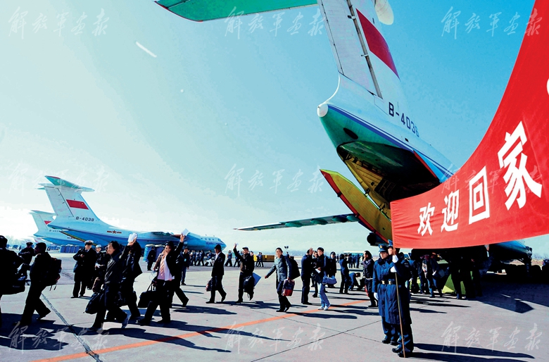 2011年1月,利比亞內(nèi)戰(zhàn)爆發(fā),空軍派出4架伊爾-76飛機(jī),于2月27日飛赴利比亞執(zhí)行接運(yùn)中國在利比亞人員的任務(wù)。這是空軍首次派運(yùn)輸機(jī)赴海外執(zhí)行撤離我人員回國任務(wù)。(攝影/沈 玲)