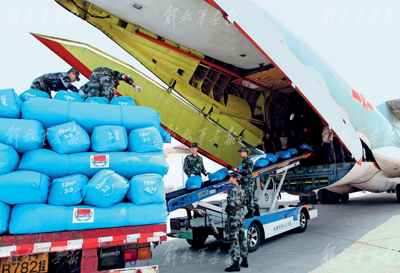 2015年4月,空軍航空兵某部飛行三大隊(duì)運(yùn)送救災(zāi)物資及人員飛赴發(fā)生強(qiáng)烈地震的尼泊爾,展開人道主義救援。(攝影/周建華)
