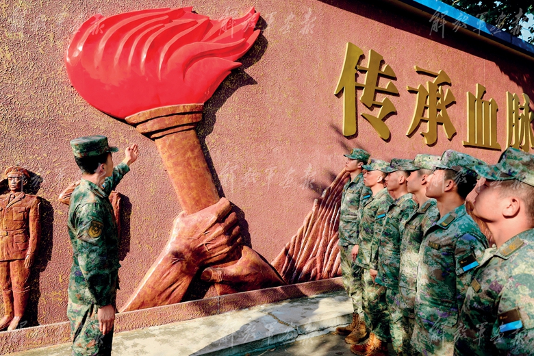 空軍某場(chǎng)站官兵在部隊(duì)先烈墻前,開展“新時(shí)代奮斗觀”大討論活動(dòng),講述部隊(duì)?wèi)?zhàn)斗歷程,激發(fā)官兵奮斗熱情。(攝影/陳豪豪)