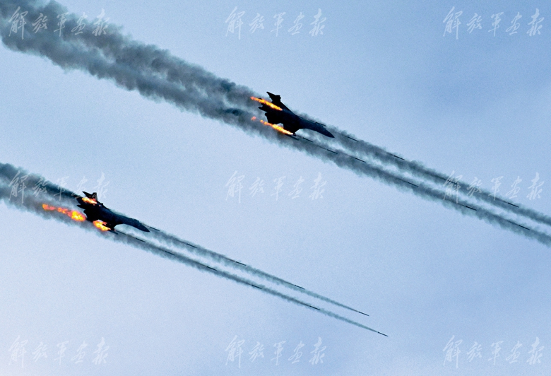 2017年9月,中巴空軍“雄鷹-Ⅵ”聯(lián)合訓(xùn)練中,空軍航空兵殲-11B戰(zhàn)機(jī)雙機(jī)編隊(duì)俯沖,對(duì)“敵”發(fā)起打擊。(攝影/陳慶順)