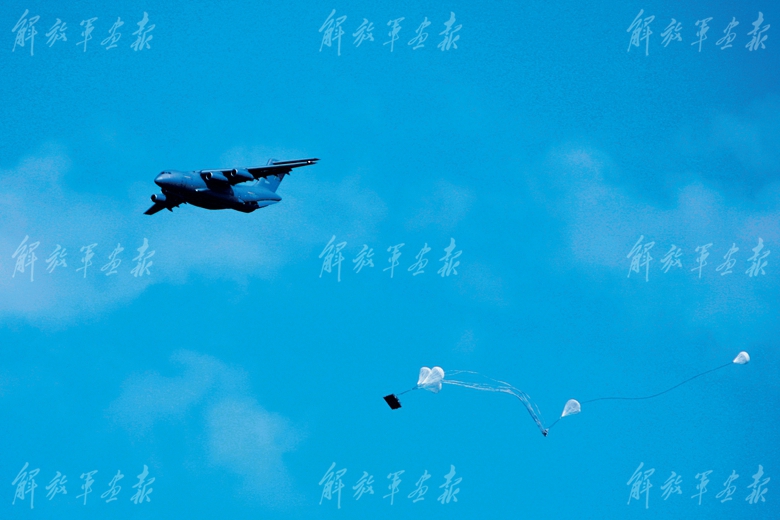2021年8月,在“國際軍事比賽-2021”中,我軍新型運(yùn)輸機(jī)運(yùn)-20參加“航空飛鏢”項(xiàng)目賽,首次亮相國際賽場(chǎng),實(shí)施重裝空投。(攝影/鄧曉明)