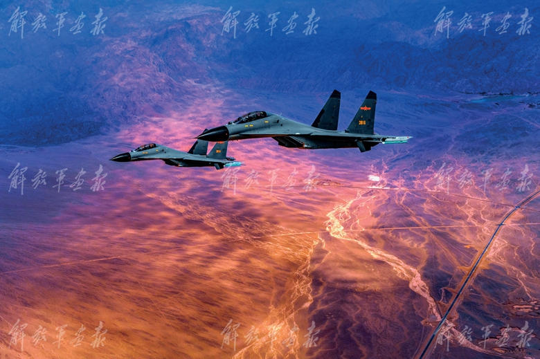 空軍某部戰(zhàn)機(jī)編隊(duì)展開實(shí)戰(zhàn)對(duì)抗訓(xùn)練。(攝影/楊 軍)