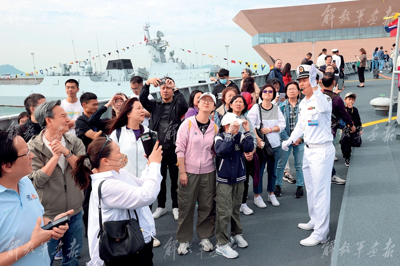 “歡聲笑語一家親?!毕愀凼忻裉寡?,海軍艦艇編隊訪問香港,搭建起香港與人民海軍交流的橋梁,也讓市民更直觀地感受到國家的強大。