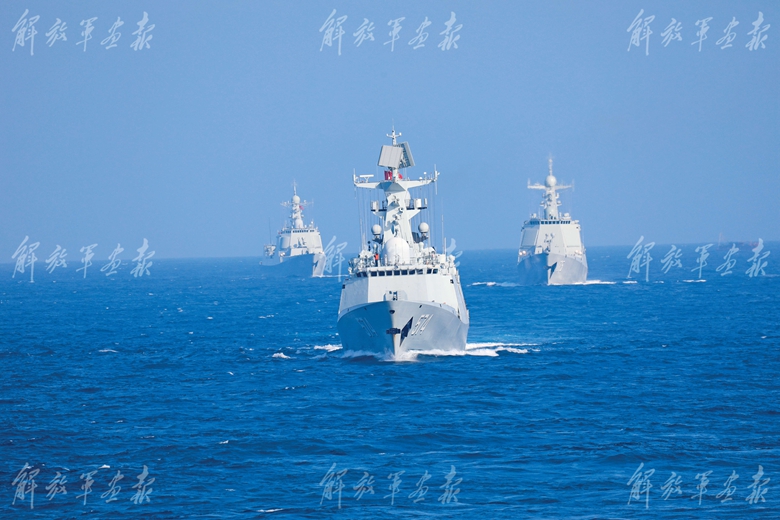 1月初,南部戰(zhàn)區(qū)海軍某驅(qū)逐艦支隊(duì)艦艇編隊(duì)開(kāi)展實(shí)戰(zhàn)化訓(xùn)練。(攝影/溫 彬)