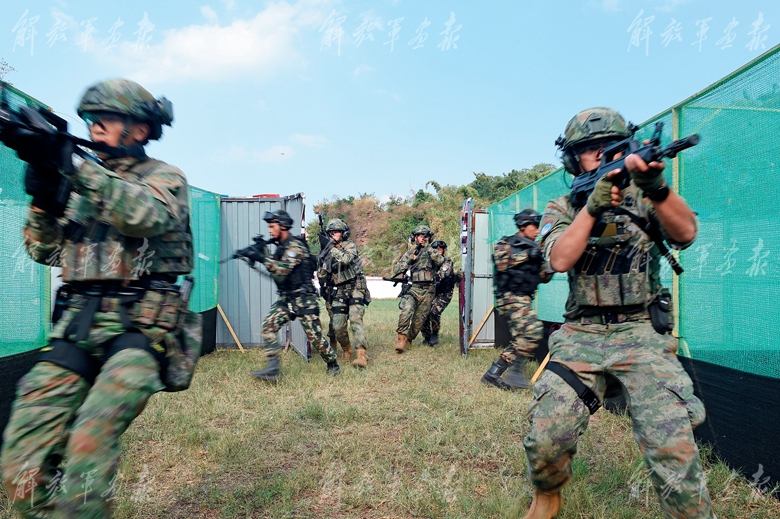 11月26日,中國(guó)和新加坡“合作-2024”陸軍聯(lián)合訓(xùn)練在河南某訓(xùn)練基地舉行。圖為雙方參訓(xùn)隊(duì)員進(jìn)行訓(xùn)練。(攝影/姜正旺)