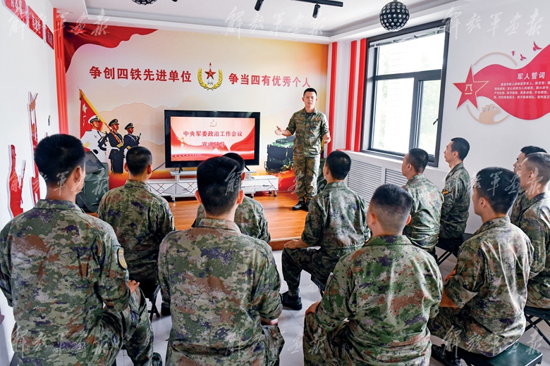 6月17日至19日,中央軍委政治工作會(huì)議在陜西延安召開(kāi)。全軍官兵深入學(xué)習(xí)貫徹中央軍委政治工作會(huì)議精神。圖為火箭軍某部開(kāi)展宣講輔導(dǎo)活動(dòng)。(攝影/陳世鋒)