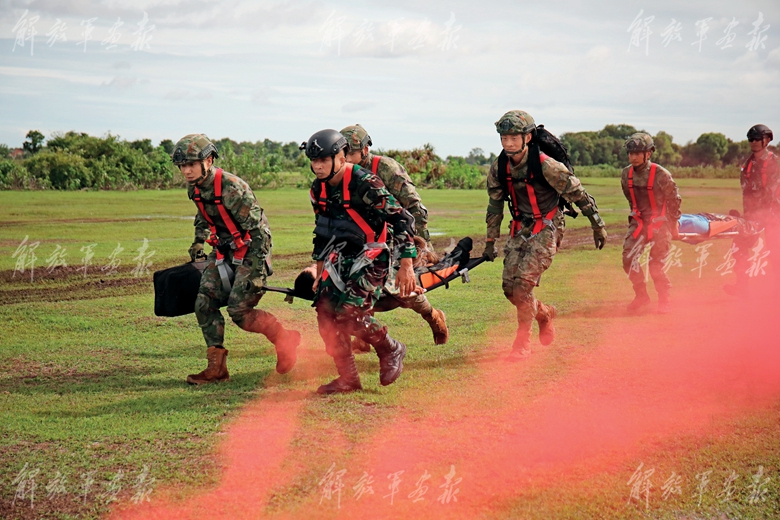 當(dāng)?shù)貢r(shí)間7月5日至18日,中老“友誼盾牌-2024”聯(lián)合演習(xí)在老撾庫(kù)瑪?shù)W(xué)院舉行。圖為雙方衛(wèi)勤保障人員聯(lián)合進(jìn)行傷員轉(zhuǎn)運(yùn)訓(xùn)練。(攝影/易 定)