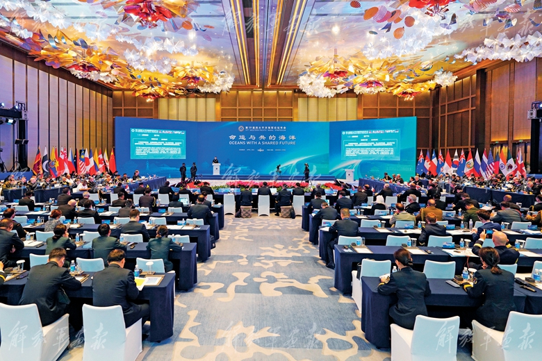 4月22日,中國(guó)海軍在山東青島承辦西太平洋海軍論壇第19屆年會(huì)。圖為會(huì)議現(xiàn)場(chǎng)。(攝影/王光杰)