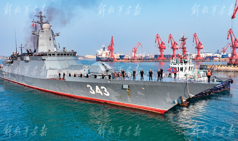 12月5日,由“響亮”號(hào)、“凜冽”號(hào)、“阿爾塔爾·琴堅(jiān)扎波夫”號(hào)護(hù)衛(wèi)艦和“佩琴加”號(hào)中型海洋油船組成的俄羅斯海軍艦艇編隊(duì),抵達(dá)青島某軍港碼頭,開(kāi)始為期5天的友好訪問(wèn)。 圖為“凜冽”號(hào)靠泊青島某軍港。(攝影/張力元)