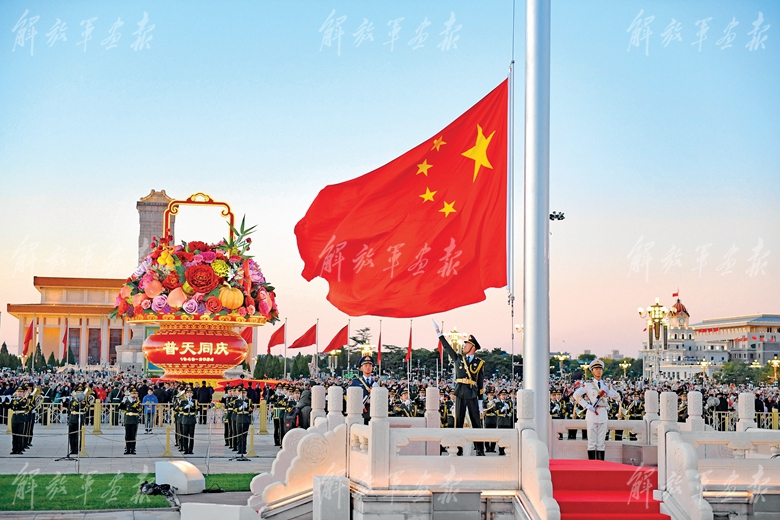 10月1日清晨,天安門(mén)廣場(chǎng)舉行升國(guó)旗儀式,慶祝新中國(guó)成立75周年。(攝影/周 輝)