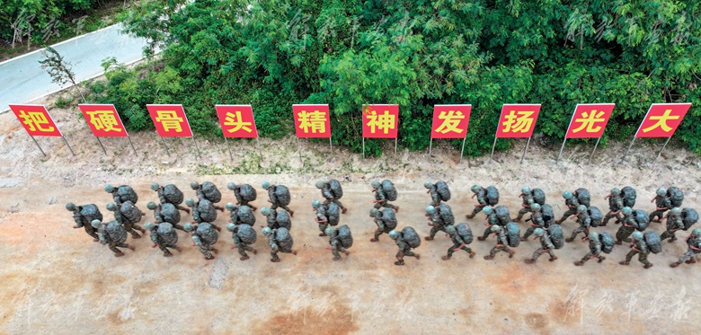 八一建軍節(jié)前夕,習(xí)主席給“強(qiáng)軍精武紅四連”全體官兵回信,對(duì)他們予以親切勉勵(lì),并致以節(jié)日問(wèn)候。圖為“強(qiáng)軍精武紅四連”官兵闊步前行。(攝影/劉志勇)