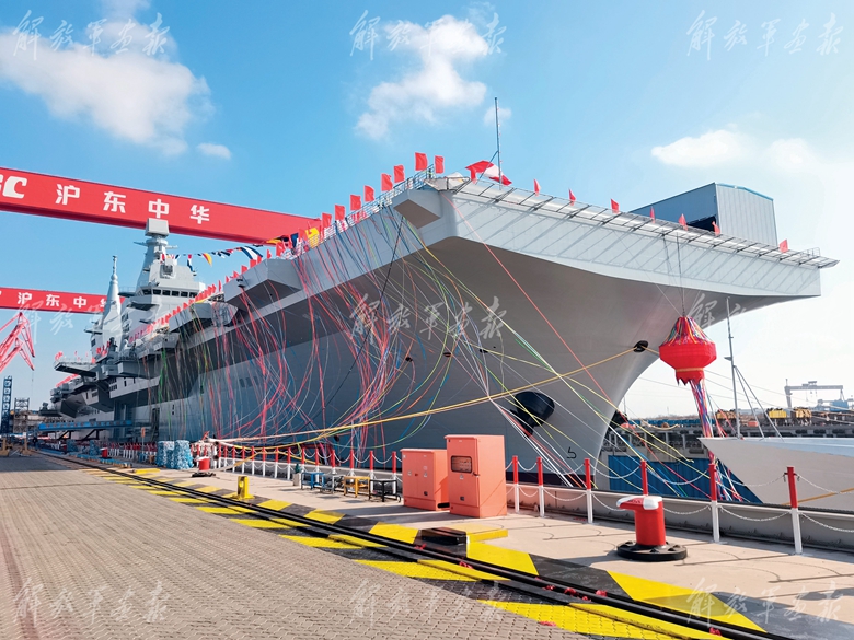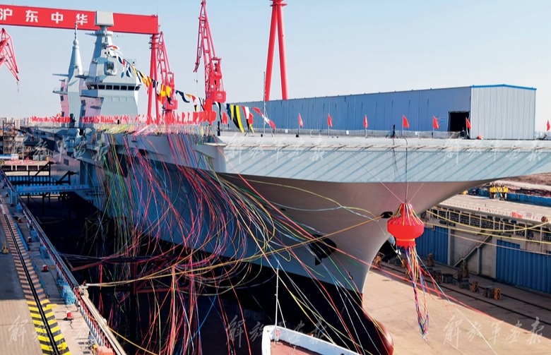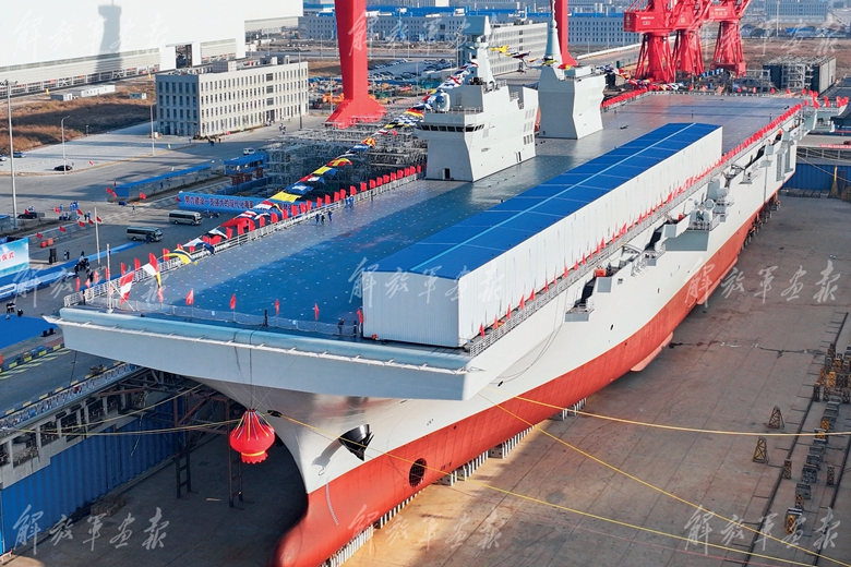 海軍076兩棲攻擊艦首艦下水命名儀式現(xiàn)場。
