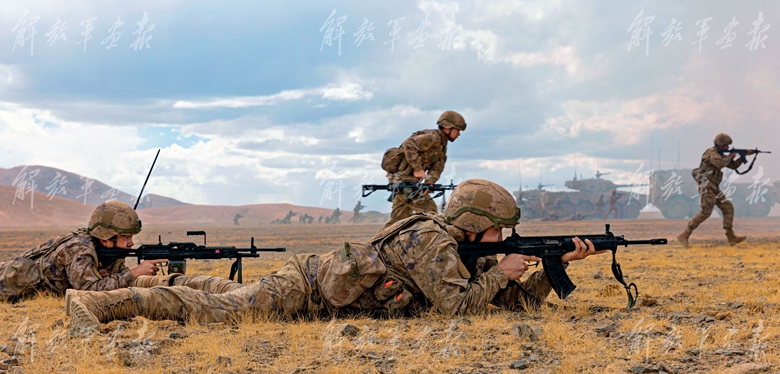掃清前方障礙,步兵在步戰(zhàn)車的支援下,交替掩護沖擊,一舉撕破“敵”防御前線。官兵們一鼓作氣,向高地發(fā)起最后的沖鋒。主攻分隊、助攻分隊輕重火器梯次開火,形成密集火力網(wǎng),向“敵”陣地壓去……