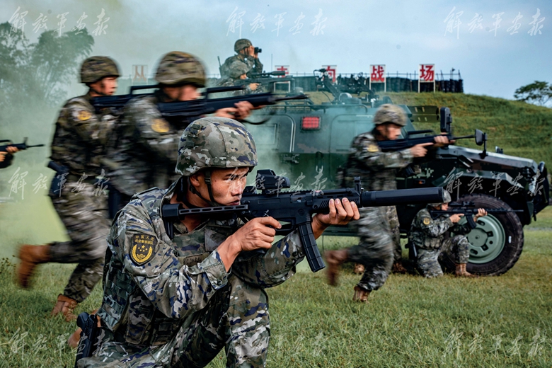 官兵對(duì)目標(biāo)進(jìn)行火力打擊。