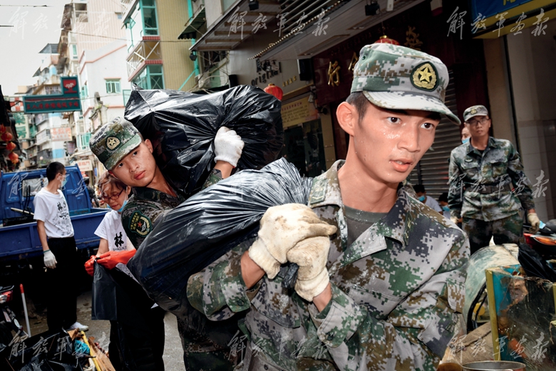 2017年8月,強(qiáng)臺(tái)風(fēng)“天鴿”正面襲擊澳門(mén)。依據(jù)澳門(mén)特別行政區(qū)基本法和駐軍法,經(jīng)澳門(mén)特區(qū)政府請(qǐng)求,中央人民政府批準(zhǔn),駐澳門(mén)部隊(duì)根據(jù)中央軍委命令和南部戰(zhàn)區(qū)指示,協(xié)助特區(qū)政府搶險(xiǎn)救災(zāi)。 (攝影/葉華敏)