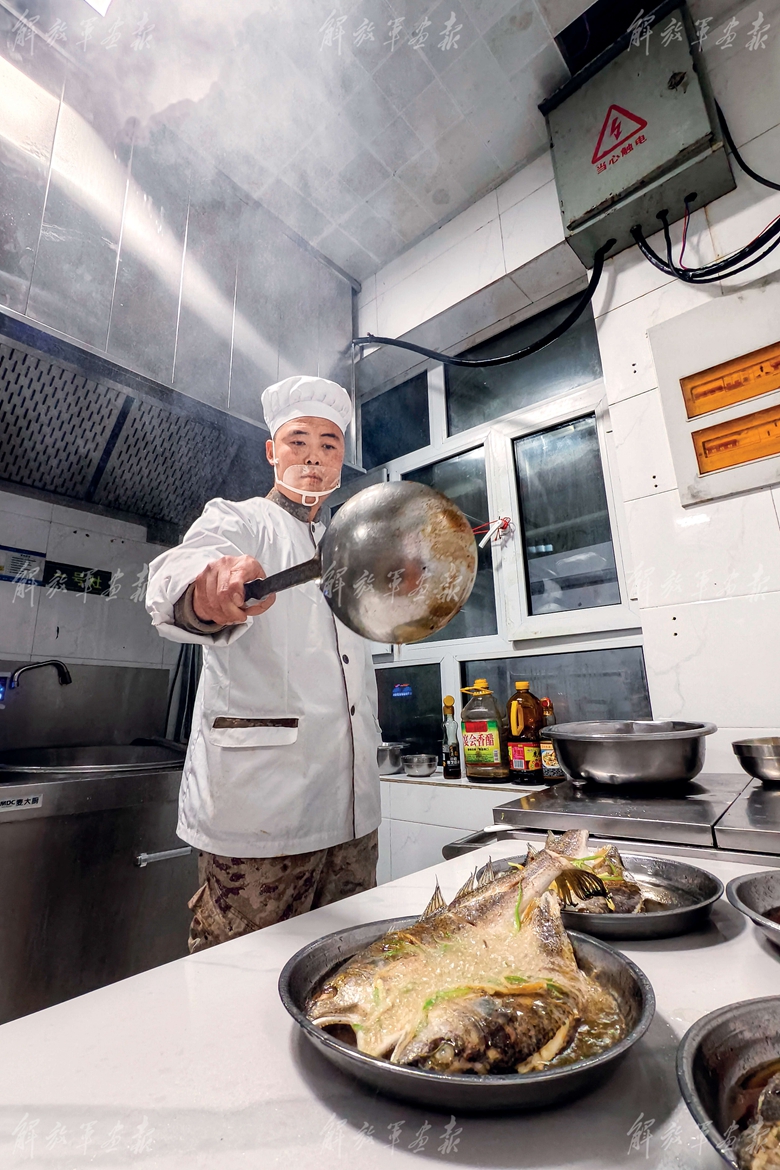 炊事班班長宋旭為戰(zhàn)友們制作可口菜肴。