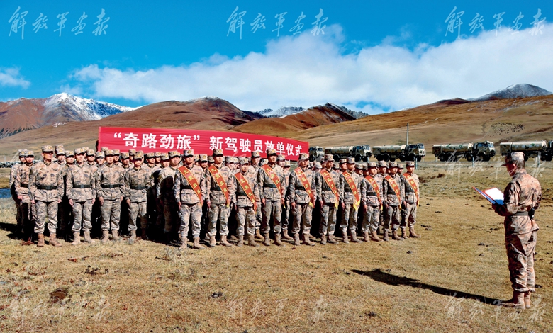 組織新駕駛員放單儀式,增強高原汽車兵的使命感和責任感。